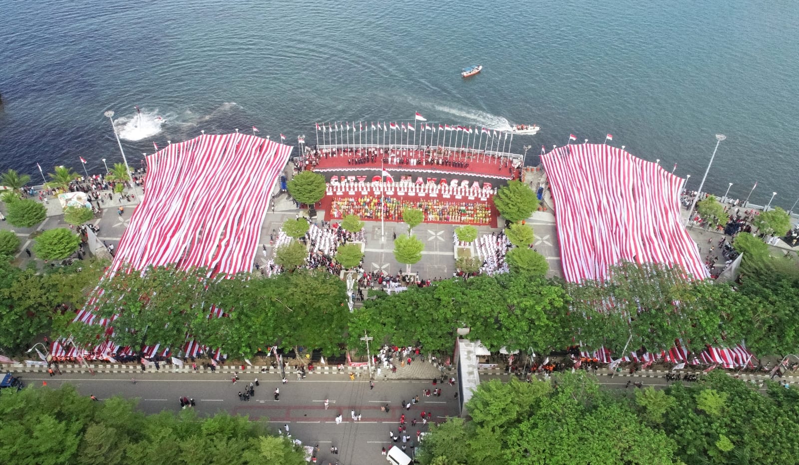 5.005 Meter Bendera Merah Putih Selimuti Anjungan Pantai Losari